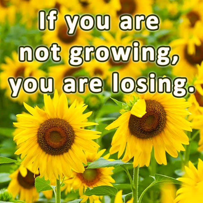 I appreciate his quote as a less morbid take on that old chestnut from William S. Burroughs, “When you stop growing you start dying.” Lou Holtz, whose immense quotability you may remember from a previous newsletter, shared a similar sentiment: “In this world you're either growing or you're dying, so get in motion and grow.”
