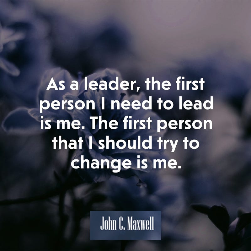 Leadership guru John C. Maxwell shared an insight into a blind spot many of us suffer: “As a leader, the first person I need to lead is me. The first person that I should try to change is me.”